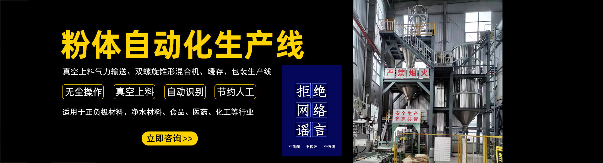 公司在制造混合設備和各類機械氣力輸送生產線的經驗沉積下,自主開發了全自動化生產線。實現了自動化拆垛、自動化輸送、自動化配料、自動化秤重混合、自動化篩分、自動化包裝、自動化碼垛一系列全自動化生產線...